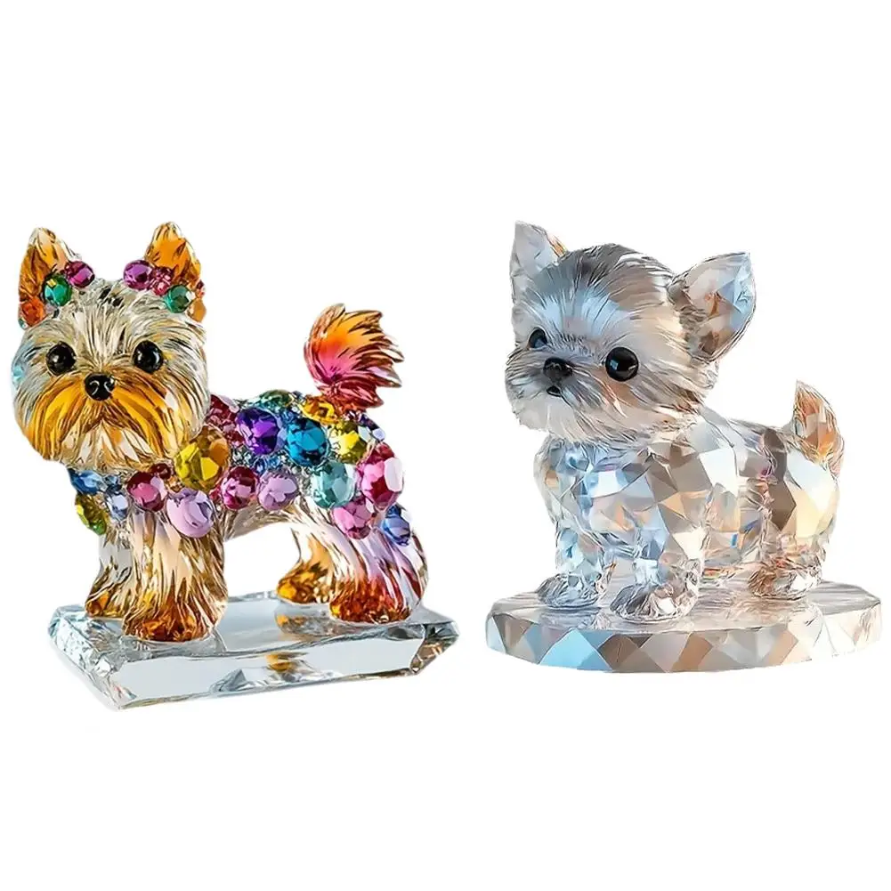Colorful Crystal Cute Yorkie Statue